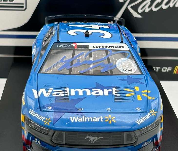 2024 Michael McDowell #34 Walmart Salutes / Ford Mustang NASCAR 1/24 diecast, by Action Lionel. The Front Row Motorsports #34 Walmart RTIC Coolers Salutes Ford Mustang was raced by Michael McDowell in the NASCAR Cup, Coca-Cola 600 at Charlotte Motor Speedway on May 26, 2024. This stars and stripes patriotic special paint scheme salutes America’s military. --