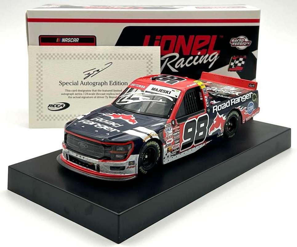 2024 Ty Majeski #98 Road Ranger / Phoenix Win / Raced Version / Ford F-150 NASCAR Truck 1/24 diecast, by Action Lionel. Ty Majeski raced this ThorSport Racing #98 Road Ranger Ford F-150 to victory in the NASCAR Craftsman Truck Series Championship race at Phoenix Raceway on November 8, 2024, clinching the NASCAR Truck Championship. --