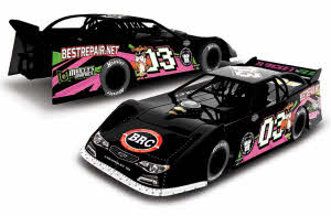 2025 Brenden Queen #03 Best Repair / Toyota Dirt Late Model 1/24 diecast, by Action Lionel. Brenden "Butterbean" Queen raced this #03 Best Repair Company Toyota Dirt Late Model during the 2025 Late Model season.