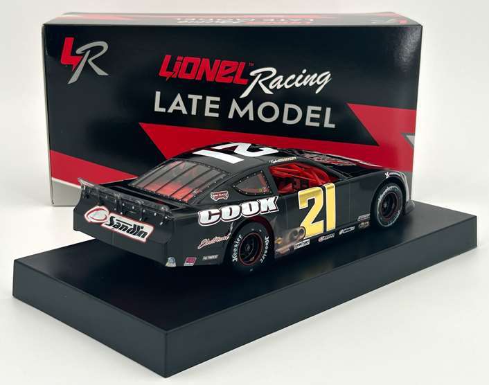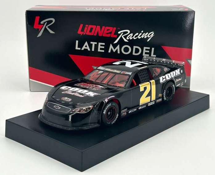 2025 Kaden Honeycutt #21 Cook / Snowball Derby Win / Raced Version / Chevrolet Super Late Model 1/24 diecast, by Action Lionel. Kaden Honeycutt raced this Jett Motorsports / Larry Blount Motorsports #21 Cook Electrical Chevrolet Super Late Model to victory in the 57th Annual Snowball Derby at 5 Flags Speedway in Pensacola, Florida. Kaden Honeycutt earned his 1st Super Late Model victory in the discipline's most prestigious race.