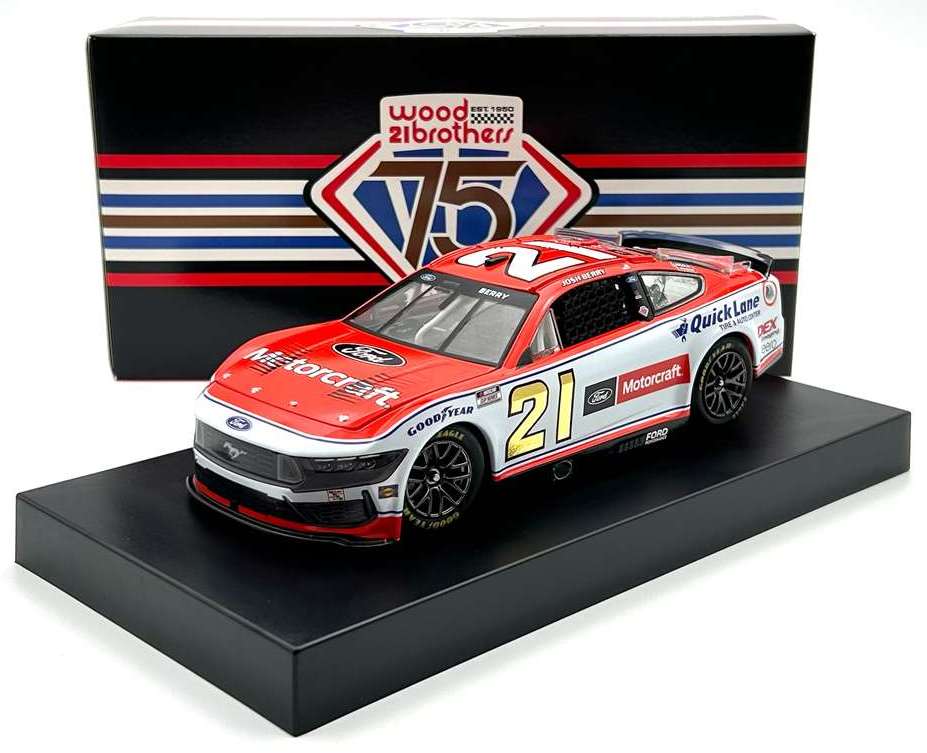2025 Josh Berry #21 Motorcraft / Ford Mustang NASCAR 1/24 diecast, by Action Lionel. The Wood Brothers Racing #21 Motorcraft Ford Mustang will be raced by Josh Berry during the 2025 NASCAR Cup season. This is a foil number car. --