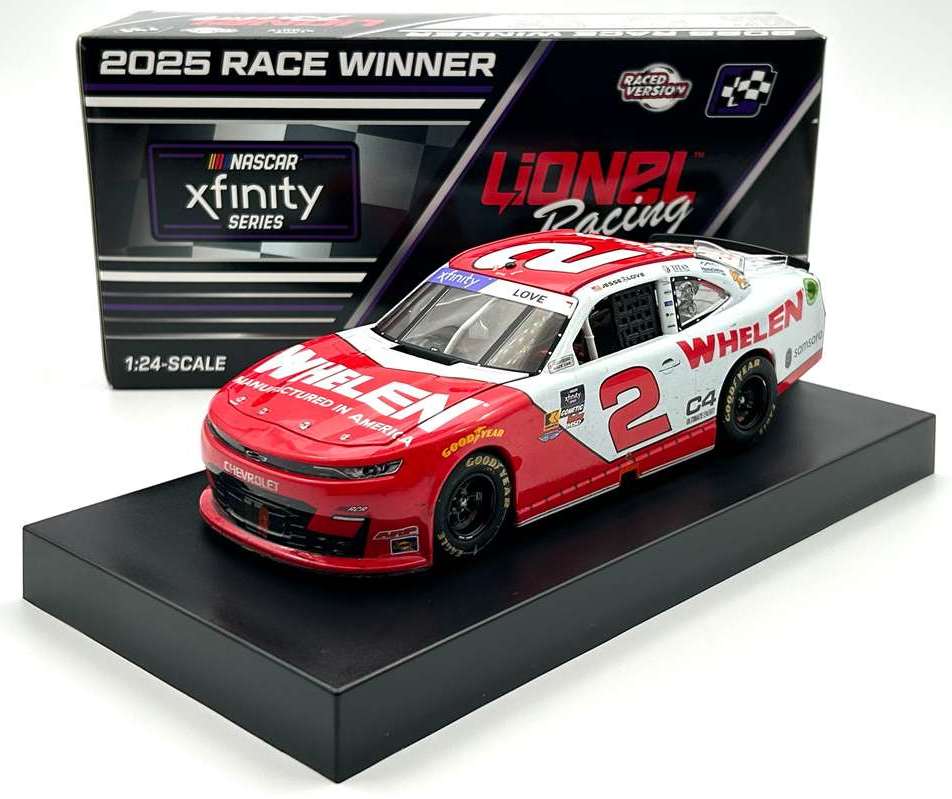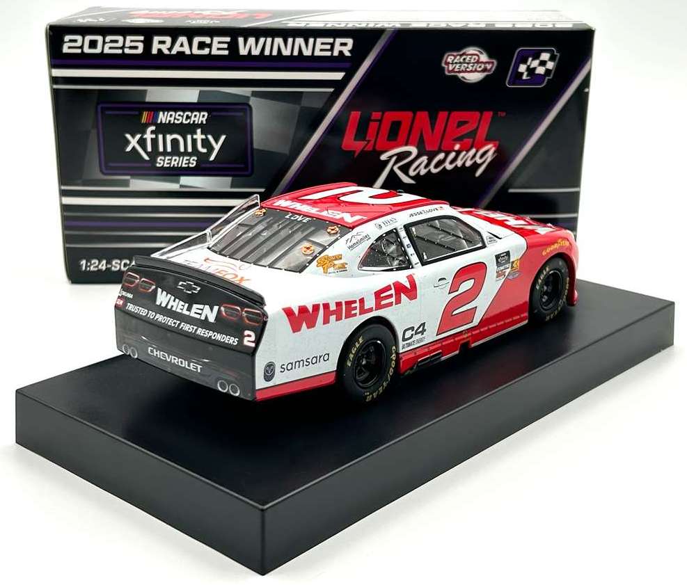 2025 Jesse Love #2 Whelen / Daytona Win / Raced Version / Chevrolet Camaro NASCAR 1/24 diecast, by Action Lionel. Jesse Love raced this Richard Childress Racing #2 Whelen Chevrolet Camaro to victory in the NASCAR xfinity Series, United Rentals 300 at Daytona International Speedway on February 15, 2025. This was the 4th-straight NASCAR xfinity Series season-opening win at Daytona for Richard Childress Racing.
