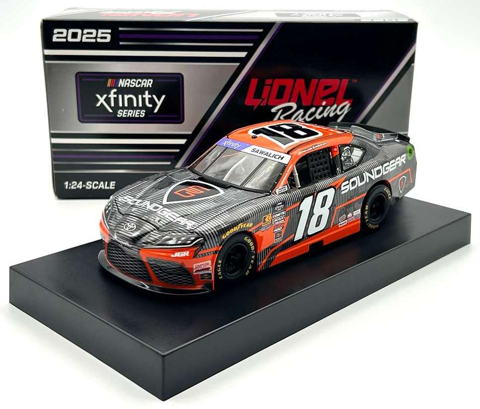 2025 William Sawalich #18 Soundgear / Toyota GR Supra NASCAR 1/24 diecast, by Action Lionel. The Joe Gibbs Racing #18 Soundgear Toyota GR Supra will be raced by 2x ARCA Menards Series East Champion William Sawalich during the 2025 NASCAR xfinity Series season. --