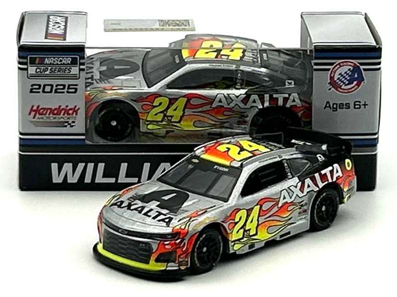2025 William Byron #24 AXALTA / Darlington Throwback / Chevrolet Camaro ZL1 NASCAR 1/64 diecast, by Action Lionel. The Hendrick Motorsports #24 AXALTA Darlington Throwback Chevrolet Camaro ZL1 was raced by William Byron in the NASCAR Cup, Goodyear 400 at Darlington Raceway on April 6, 2025. This is a throwback to 2015, with a Jeff Gordon "Final Ride" livery.