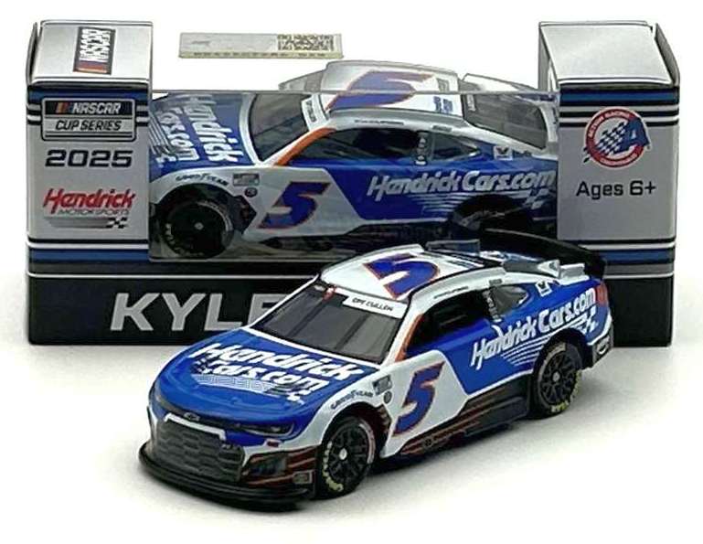 2025 Kyle Larson #5 HendrickCars.com H1100 / Chevrolet Camaro ZL1 NASCAR 1/64 diecast, by Action Lionel. The Hendrick Motorsports #5 HendrickCars.com H1100 Chevrolet Camaro ZL1 was raced by Kyle Larson in the NASCAR Cup, Coca-Cola 600 at Charlotte Motor Speedway on May 25, 2025. For the 2nd straight year, Larson will attempt 1100 miles of racing between the Indianapolis 500 and Coca-Cola 600.