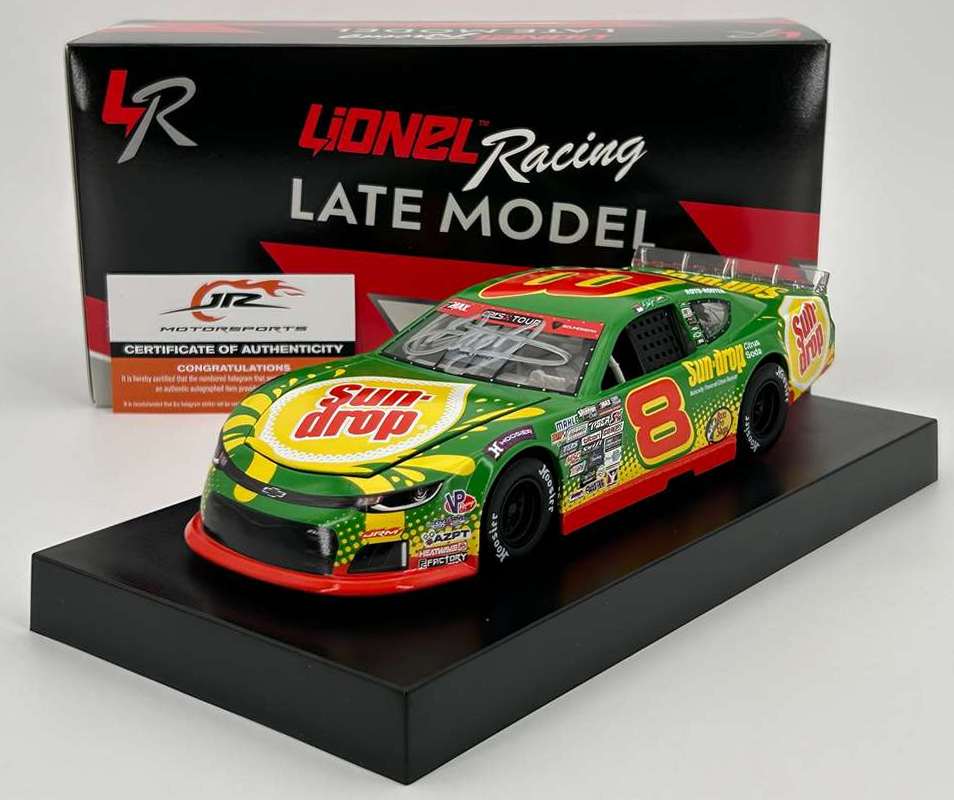 2025 Dale Earnhardt Jr #8 Sun Drop / Chevrolet Late Model Stock Car 1/24 diecast, by Action Lionel. Dale Earnhardt Jr raced this #8 Sun Drop Chevrolet Late Model in the zMAX CARS Tour at Tri-County Motor Speedway in Granite Falls, NC. on October 4, 2025.