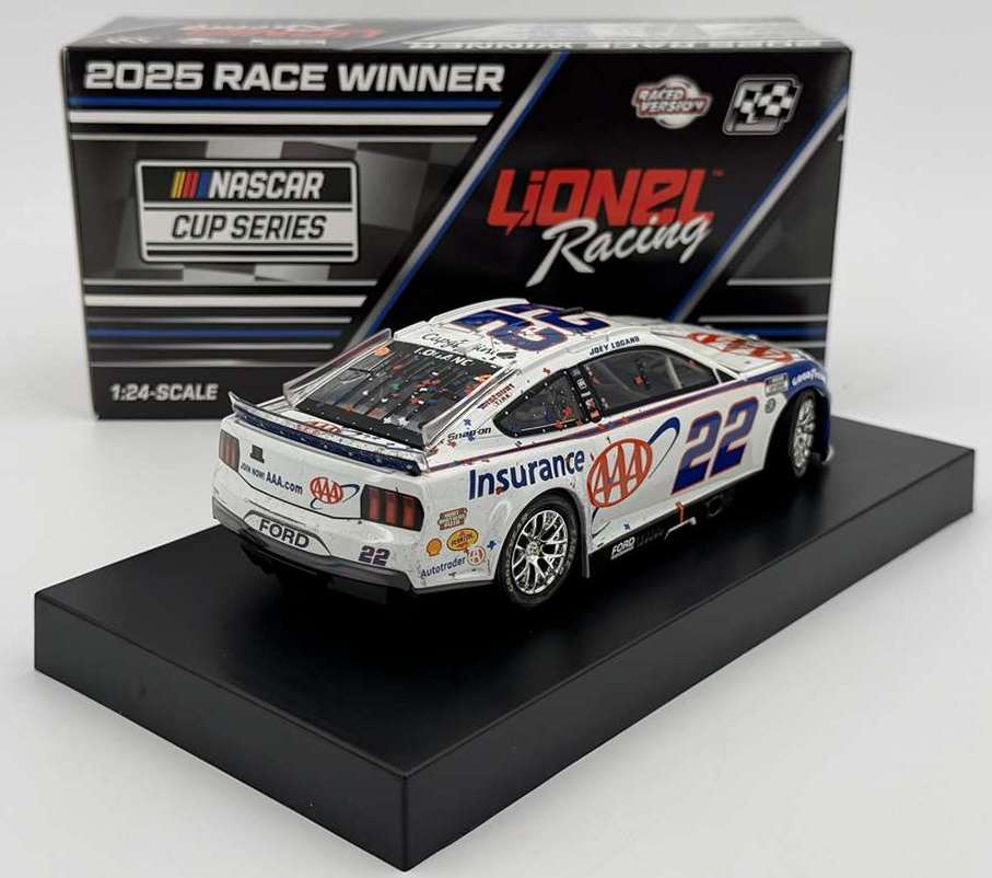 2025 Joey Logano #22 AAA Insurance / Texas Win / Raced Version / Ford Mustang NASCAR 1/24 diecast, by Action Lionel. Joey Logano raced this Team Penske #22 AAA Insurance Ford Mustang to victory in the NASCAR Cup, Wurth 400 presented by LIQUI MOLY at Texas Motor Speedway on May 4, 2025. This was Joey Logano's 37th career NASCAR Cup Series win.