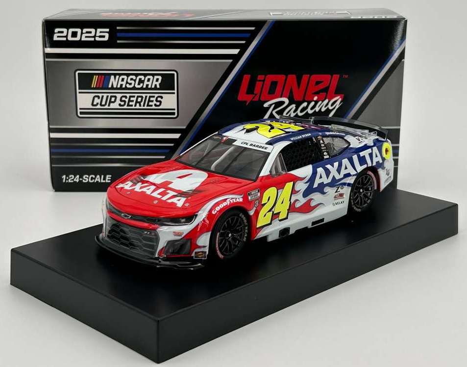 2025 William Byron #24 AXALTA Patriotic / Chevrolet Camaro ZL1 NASCAR 1/24 diecast, by Action Lionel. The Hendrick Motorsports #24 AXALTA Patriotic Chevrolet Camaro ZL1 was raced by William Byron in the NASCAR Cup, Coca-Cola 600 at Charlotte Motor Speedway on May 25, 2025.