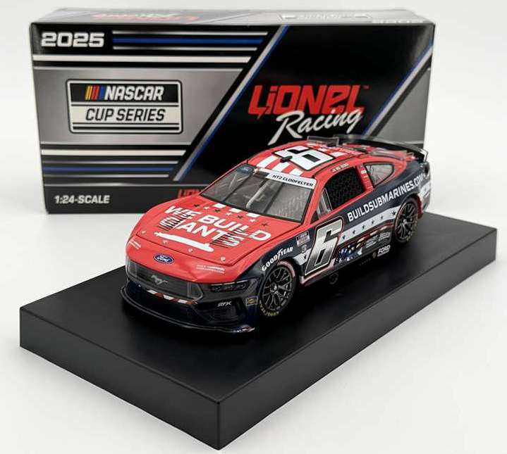 2025 Brad Keselowski #6 BuildSubmarines.com Salutes / Ford Mustang NASCAR 1/24 diecast, by Action Lionel. The RFK Roush Fenway Keselowski Racing #6 BuildSubmarines.com Salutes Ford Mustang was raced by Brad Keselowski in the NASCAR Cup, Coca-Cola 600 at Charlotte Motor Speedway on May 25, 2025. This is a foil number car. --