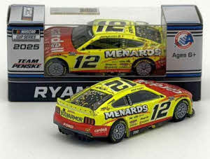 2025 Ryan Blaney #12 Menards / Nashville Win / Raced Version / Ford Mustang NASCAR 1/64 diecast, by Action Lionel. Ryan Blaney raced this Team Penske #12 Menards Cardell Ford Mustang to victory in the NASCAR Cup, Cracker Barrel 400 at Nashville Superspeedway on June 1, 2025.