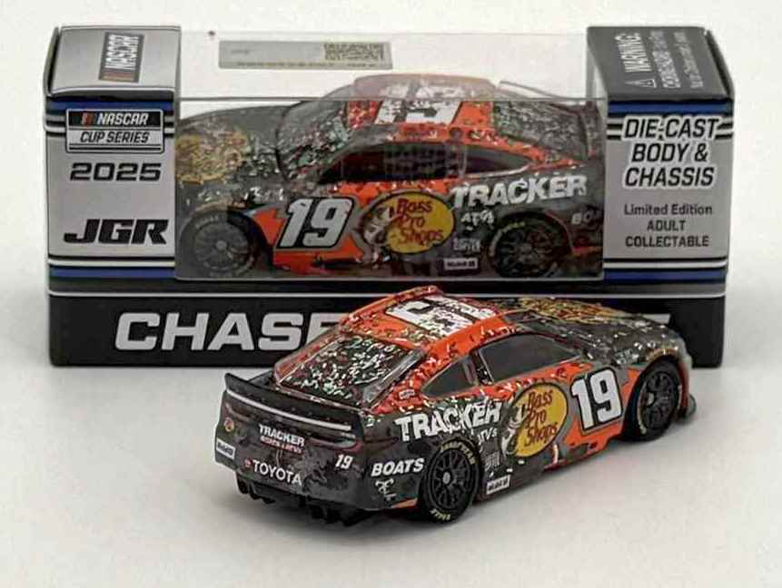 2025 Chase Briscoe #19 Bass Pro Shops / Pocono Win / Raced Version / Toyota Camry XSE NASCAR 1/64 diecast, by Action Lionel. Chase Briscoe raced this Joe Gibbs Racing #19 Bass Pro Shops Toyota Camry XSE to victory in the NASCAR Cup, The Great American Getaway 400 at Pocono Raceway on June 22, 2025. This was Chase Briscoe's 1st win with JGR Joe Gibbs Racing.