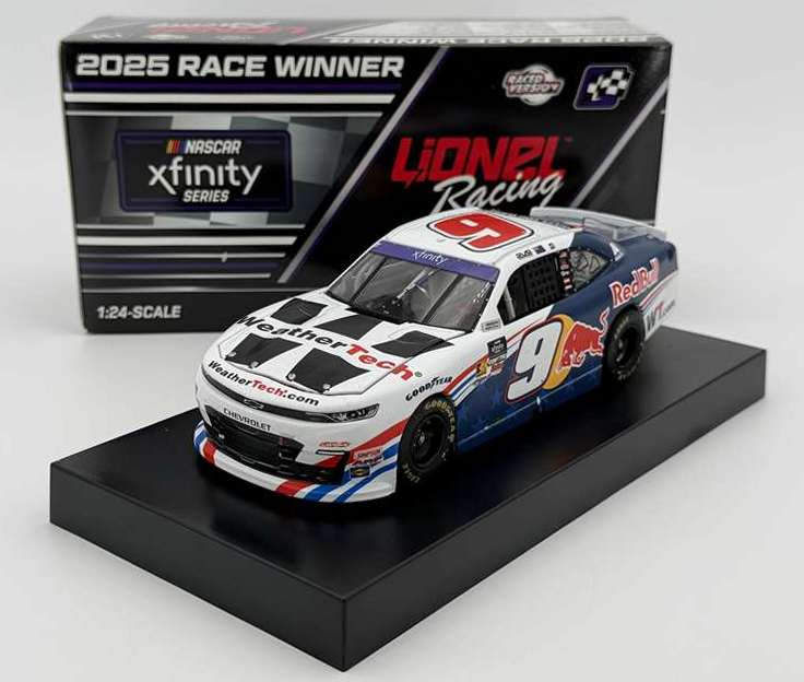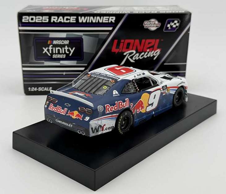 2025 Shane Van Gisbergen #9 Red Bull / Chicago Win / Raced Version / Chevrolet Camaro NASCAR 1/24 diecast, by Action Lionel. Shane Van Gisbergen raced this JR Motorsports #9 Red Bull WeatherTech Chevrolet Camaro to victory in the NASCAR xfinity Series, The Loop 110 at the Chicago Street Course on July 5, 2025. This was Shane Van Gisbergen's 2nd-straight NASCAR xfinity win at Chicago.