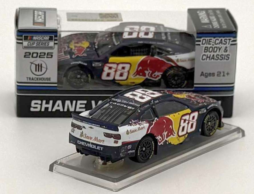 2025 Shane Van Gisbergen #88 Red Bull / Sonoma Win / Raced Version / Chevrolet Camaro ZL1 NASCAR 1/64 diecast, by Action Lionel. Shane Van Gisbergen raced this Trackhouse Racing #88 Red Bull Chevrolet Camaro ZL1 to victory in the NASCAR Cup, Toyota / Save Mart 350 at Sonoma Raceway on July 13, 2025. This was Shane Van Gisbergen's 4th NASCAR Cup Series win in 34 starts, becoming the quickest to 4 wins since Parnelli Jones in 1967.
