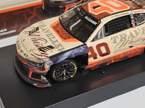 2025 Justin Allgaier #40 Traveller Whiskey / Daytona 500 / Raced Version / Chevrolet Camaro ZL1 NASCAR 1/24 diecast, by Action Lionel. Justin Allgaier raced this JR Motorsports #40 Traveller Whiskey Chevrolet Camaro ZL1 to a top-10 finish in the NASCAR Cup Series, Daytona 500 at Daytona International Speedway on February 16, 2025. This was the 1st NASCAR Cup event for JR Motorsports. Along for the ride was Traveller Whiskey, a Buffalo Trace Distillery brand championed by Chris Stapleton. The standard 1/24, Autographed, and Whiskey version were produced with Lionel Racing's sound base that features audio clips of both Allgaier and team co-owner Dale Earnhardt Jr. reminiscing about the 1st JRM Cup start. This is a foil number car.