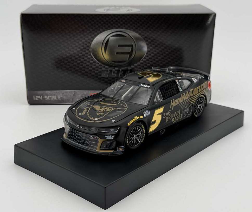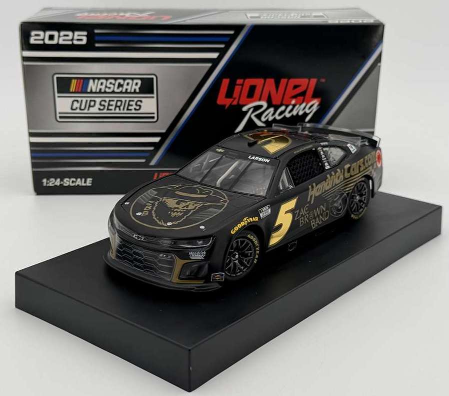 2025 Kyle Larson #5 HendrickCars.com / Zac Brown Band / Chevrolet Camaro ZL1 NASCAR 1/24 diecast, by Action Lionel. The Hendrick Motorsports #5 HendrickCars.com Zac Brown Band Chevrolet Camaro ZL1 was raced by Kyle Larson in the NASCAR Cup, South Point 400 at Las Vegas Motor Speedway on October 12, 2025. This livery features award-winning and fan-favorite country music group Zac Brown Band. This is a foil number car.