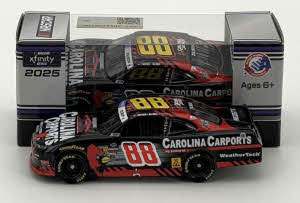 2025 Connor Zilisch #88 Carolina Carports / Dover Win / Raced Version / Chevrolet Camaro NASCAR 1/64 diecast, by Action Lionel. Connor Zilisch raced this JR Motorsports #88 Carolina Carports Chevrolet Camaro to victory in the NASCAR xfinity Series, BetRivers 200 at Dover Motor Speedway on July 19, 2025. This was Connor Zilisch's 4th win of the 2025 xfinity Series season.