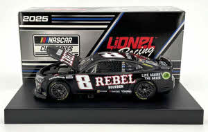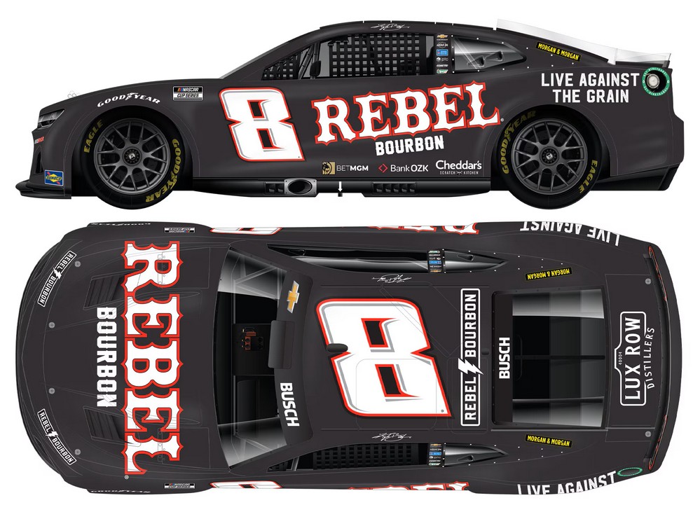 2025 Kyle Busch #8 REBEL Bourbon Special / Chevrolet Camaro ZL1 NASCAR 1/24 diecast, by Action Lionel. The Richard Childress Racing #8 REBEL Bourbon Special Chevrolet Camaro ZL1 was raced by Kyle Busch in 2 events during the 2025 NASCAR Cup season, Richmond and St. Louis.