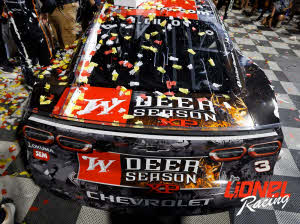 2025 Austin Dillon #3 Bass Pro Shops / Winchester Deer Season / Richmond Win / Raced Version / Chevrolet Camaro ZL1 NASCAR 1/64 diecast, by Action Lionel. Austin Dillon raced this Richard Childress Racing #3 Bass Pro Shops Winchester Deer Season Chevrolet Camaro ZL1 to victory in the NASCAR Cup, Cook Out 400 at Richmond Raceway on August 16, 2025. This was Austin Dillon's 6th career NASCAR Cup win and the 2nd-straight at Richmond.