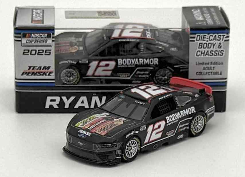 2025 Ryan Blaney #12 BODYARMOR Black / Ford Mustang NASCAR 1/64 diecast, by Action Lionel. The Team Penske #12 BODYARMOR Black Ford Mustang was raced to a 3rd-place finish by Ryan Blaney the NASCAR Cup, Cook Out 400 at Richmond Raceway on August 16, 2025.
