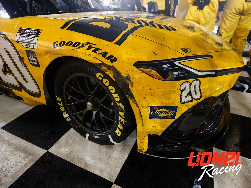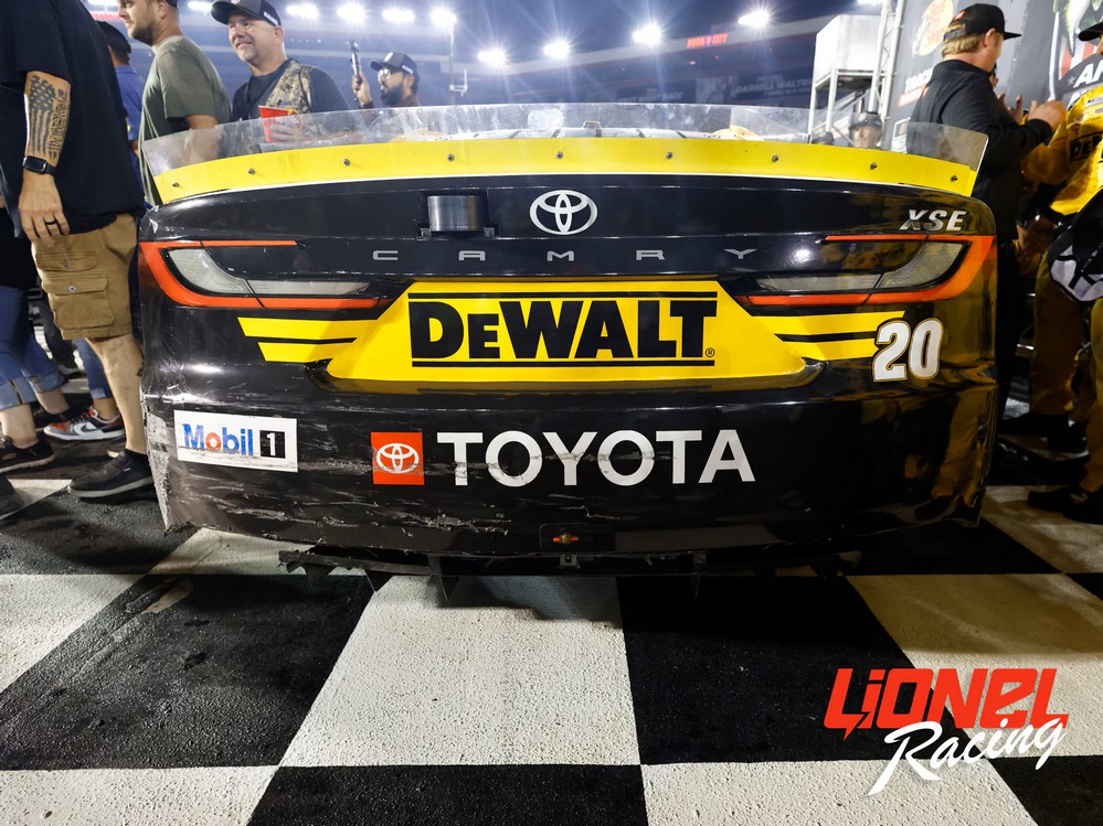 2025 Christopher Bell #20 DEWALT / Bristol Win / Raced Version / Toyota Camry XSE NASCAR 1/64 diecast, by Action Lionel. Christopher Bell raced this Joe Gibbs Racing #20 DEWALT Toyota Camry XSE to victory in the NASCAR Cup, Bass Pro Shops Night Race at Bristol Motor Speedway on September 13, 2025. This was Christopher Bell's 4th win of 2025 NASCAR Cup season. This win also completed the NASCAR Cup Series Playoff Round of 16 sweep for Joe Gibbs Racing.