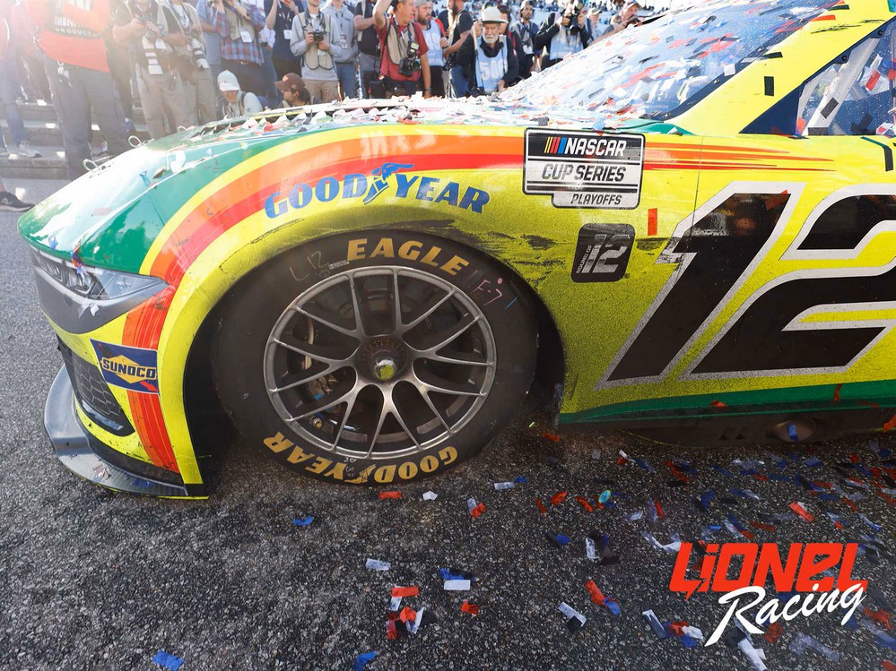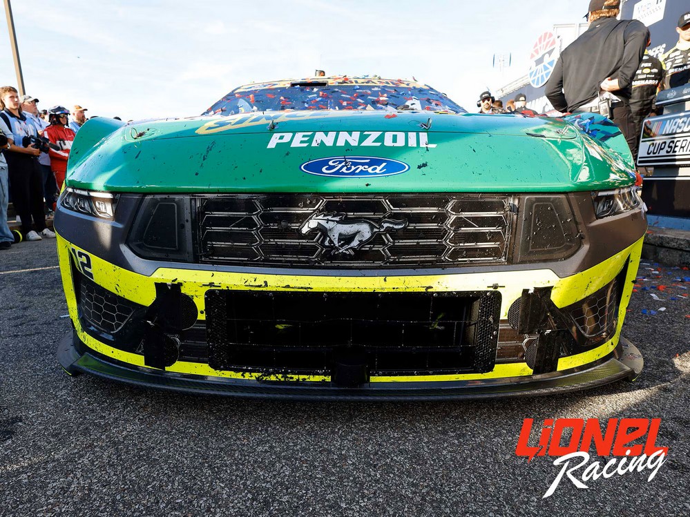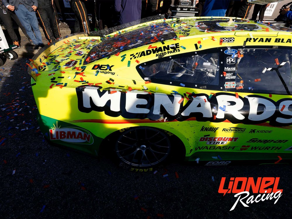 2025 Ryan Blaney #12 Menards / Libman / New Hampshire Win / Raced Version / Ford Mustang NASCAR 1/64 diecast, by Action Lionel. Ryan Blaney raced this Team Penske #12 Menards Libman Ford Mustang to victory in the NASCAR Cup, Mobil 1 301 at New Hampshire Motor Speedway on September 21, 2025. This was Ryan Blaney's 3rd NASCAR Cup Series win of the season.