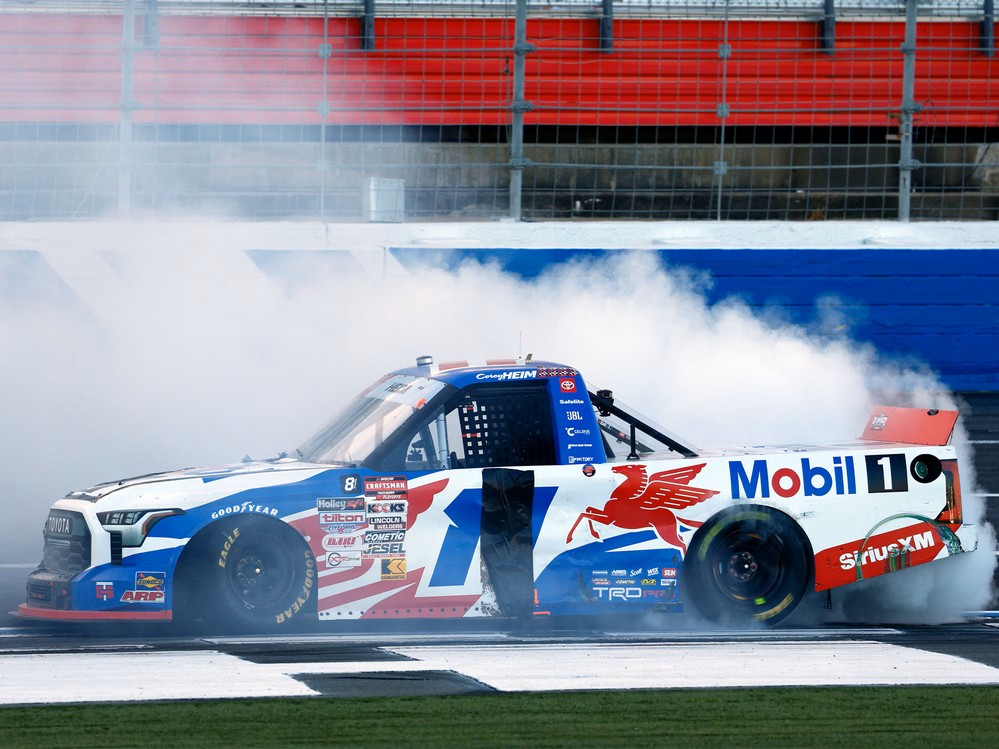 2025 Corey Heim #11 Mobil 1 / ROVAL Win / Raced Version / Toyota Tundra NASCAR Truck 1/24 diecast, by Action Lionel Racing. Corey Heim raced this TRICON Garage #11 Mobil 1 Toyota Tundra truck to victory in the NASCAR Craftsman Truck Series, Ecosave 250 at at Charlotte Motor Speedway Road Course on October 3, 2025. This was Corey Heim's 10th win of the 2025 NASCAR Craftsman Truck Series season.