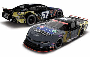 2025 Landon Huffman #57 IBCI / Josh Cellars / Raced Version / Chevrolet Late Model 1/24 diecast, by Action Lionel Racing. Landon Huffman raced this Carroll Speedshop #57 IBCI / Josh Cellars Chevrolet Late Model Stock Car in the zMAX CARS Tour Window World 100 (LMSC 100) at North Wilkesboro Speedway on May 16, 2025. Landon Huffman made waves throughout the short track world when he was able to take a heavily-damaged #57 Chevrolet Late Model to a 6th-place finish at North Wilkesboro. The driver's side door was ripped away from the car's body, tape was used to hold many other body panels in place, and there were plenty of other battle scars from the race.