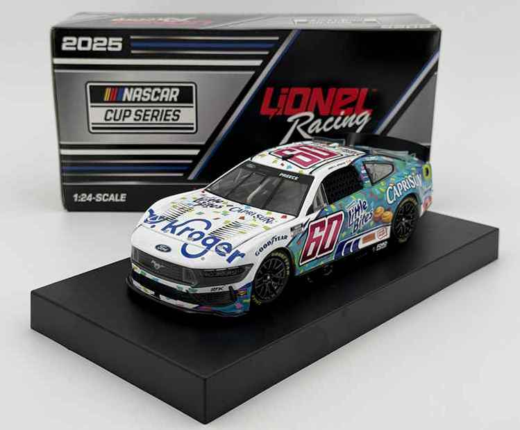 2025 Ryan Preece #60 Kroger / Little Bites / Capri Sun / Ford Mustang NASCAR 1/24 diecast, by Action Lionel Racing. The RFK Roush Fenway Keselowski Racing #60 Kroger Little Bites Capri Sun Ford Mustang was raced by Ryan Preece in the NASCAR Cup, Coke Zero Sugar 400 at Daytona International Speedway on August 23, 2025. This is a foil number car.