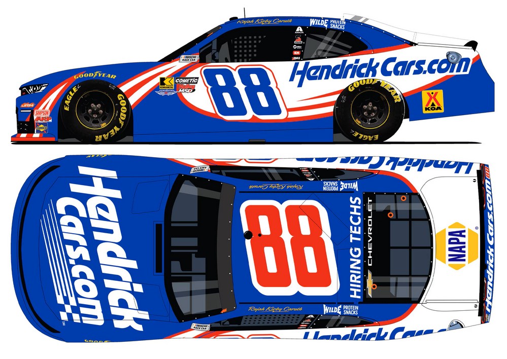 2026 Rajah Caruth #88 HendrickCars.com / Chevrolet Camaro NASCAR 1/64 diecast, by Action Lionel Racing. The JR Motorsports #88 HendrickCars.com Chevrolet Camaro will be raced by Rajah Caruth during the 2026 NASCAR O’Reilly Auto Parts Series season.