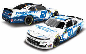 2026 Austin Hill #21 Bennett Transportation / Daytona Win / Raced Version / Chevrolet NASCAR 1/24 diecast, by Action Lionel Racing. Austin Hill raced this Richard Childress Racing #21 Bennett Transportation & Logistics Chevrolet to victory in the NASCAR O'Reilly Auto Parts Series, United Rentals 300 at Daytona International Speedway on February 14, 2026. After winning the pole in qualifying, Hill led 78 laps for his 15th career NASCAR O'Reilly Auto Parts victory. This was Austin Hill's 4th February Daytona Win.