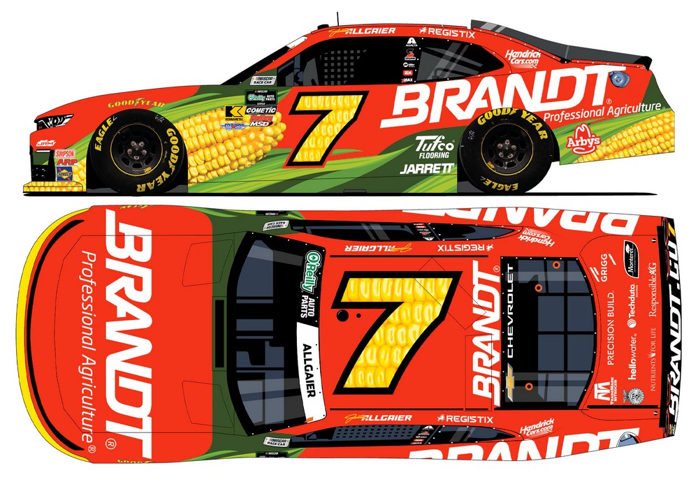 2026 Justin Allgaier #7 BRANDT / Chevrolet NASCAR 1/64 diecast, by Action Lionel Racing. The JR Motorsports #7 BRANDT Professional Agriculture Chevrolet will be raced by Justin Allgaier during the 2026 NASCAR O'Reilly Auto Parts Series.