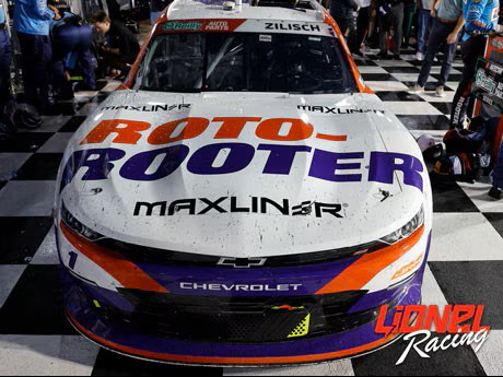 2026 Connor Zilisch #1 Roto-Rooter / Bristol Win / Raced Version / Chevrolet NASCAR 1/24 diecast, by Action Lionel Racing. Connor Zilisch raced this JR Motorsports #1 Roto-Rooter Chevrolet to victory in the NASCAR O'Reilly Auto Parts Series, Suburban Propane 300 at Bristol Motor Speedway on April 11, 2026. Connor Zilisch picked up his 12th career NASCAR O'Reilly Auto Parts Series win and the 6th win for JR Motorsports this season out of the 9 events.