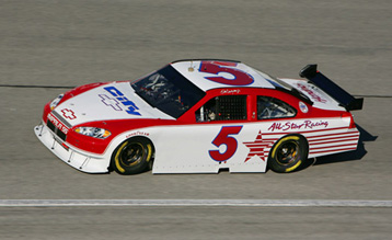 2008 Dale Earnhardt Jr #5 All-Star Racing / Chevrolet Impala SS NASCAR diecast, by Action. To commemorate his first laps with Hendrick Motorsports, Dale Earnhardt Jr sported a "throwback" #5 All-Star Racing Chevrolet during the NASCAR NEXTEL Cup Series testing at Atlanta Motor Speedway. Earnhardt's Chevrolet featured a red and white paint scheme identical to the first car campaigned by team owner Rick Hendrick in Cup-level competition. Then known as "All-Star Racing", Hendrick Motorsports fielded the car with driver Geoff Bodine in 1984.