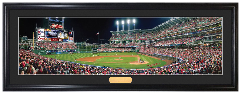 Cleveland Indians 2013 Progressive Field Framed Panoramic Photograph. This officially licensed MLB panorama photo is of Progressive Field in Cleveland, Ohio during the 2013 MLB American League Wild Card Game on October 2, 2013. The standard panorama features your choice of black or cherry wood frame. Actual size is 40" x 14"