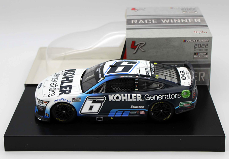 2022 Brad Keselowski #6 Kohler / Daytona Duel Win / Raced Version / Ford Mustang NASCAR 1/24 diecast, by Action Lionel. Brad Keselowski raced this RFK Roush Fenway Keselowski Racing #6 Kohler Generators Ford Mustang to victory in the NASCAR Cup, Bluegreen Vacations Duel 1 at Daytona International Speedway on February 18, 2022.