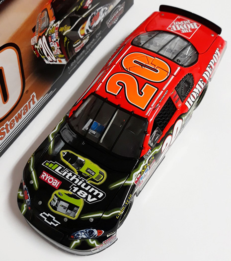 2007 Tony Stewart #20 Home Depot / Ryobi / Chevrolet Monte Carlo SS 1/24 diecast, by Action. This Joe Gibbs Racing #20 Home Depot Ryobi Chevrolet Monte Carlo SS was raced by Tony Stewart in the NASCAR NEXTEL Cup, LifeLock 400 at Kansas Speedway on September 30, 2007. Reduced from $64.99
