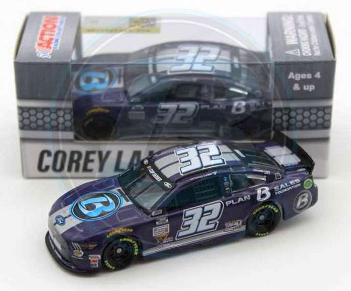 2020 Corey LaJoie #32 Plan B Sales Foundation / Chevrolet Camaro ZL1 NASCAR 1/64 diecast, by Action Lionel. The Go Fas Racing GFR #32 Plan B Sales Foundation Chevrolet Camaro ZL1 was raced by Corey LaJoie in the NASCAR Cup, Hollywood Casino 400 at Kansas Speedway on October 18, 2020.