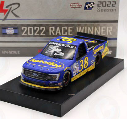 2022 Zane Smith #38 speedco / COTA Win / Raced Version / Ford F-150 NASCAR Truck 1/24 diecast, by Action Lionel. Zane Smith raced this Front Row Motorsports #38 speedco Ford F-150 truck to victory in the NASCAR Camping World Truck Series, EXPEL 250 at Circuit of the America COTA road course on March 26, 2022. This was Zane Smith's 5th career NASCAR Truck Series win.