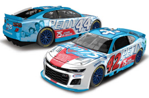 2024 Petty Family 75 Years of Racing / Chevrolet Camaro ZL1 NASCAR 1/24 diecast, produced with a Diamond special finish by Action Lionel. The Petty Family 75 Years of Racing diecast car features Lee Petty, "The King" Richard Petty, Maurice Petty, Kyle Petty, Adam Petty, Mark Petty, and Ritchie Petty. This commemorative fantasy car honors the 75-year racing legacy of the Petty family.