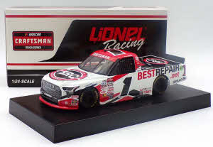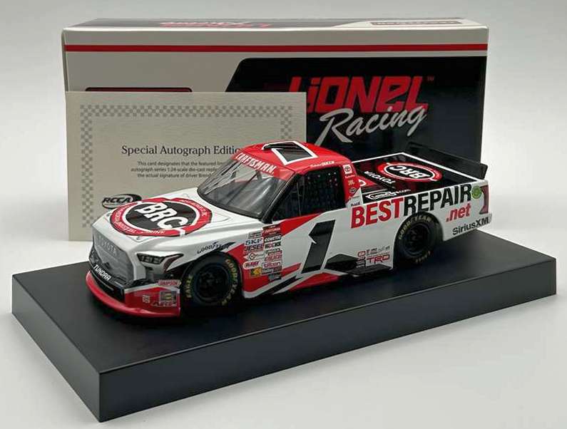2024 Brenden Queen #1 Best Repair / Toyota Tundra NASCAR Truck 1/24 diecast, by Action Lionel. The TRICON Garage #1 Best Repair Toyota Tundra was raced by Brenden "Butterbean" Queen in the NASCAR Craftsman Truck Series, Wright Brand 250 at North Wilkesboro Speedway on May 18, 2024. Brenden Queen started in 26th and finish with an impressive 4th-place finish in his 1st NASCAR Craftsman Truck Series start.