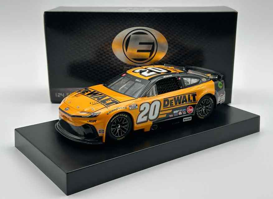 2025 Christopher Bell #20 DEWALT / Toyota Camry XSE NASCAR ELITE 1/24 diecast, by Action Lionel. The Joe Gibbs Racing #20 DEWALT Toyota Camry XSE was raced by Christopher Bell during the 2025 NASCAR Cup season.