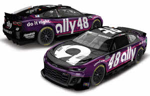 2025 Alex Bowman #48 ally / Chevrolet Camaro ZL1 NASCAR 1/24 diecast, produced with a Color Chrome special finish by Action Lionel. The Hendrick Motorsports #48 ally Chevrolet Camaro ZL1 was raced by Alex Bowman during the 2025 NASCAR Cup season.