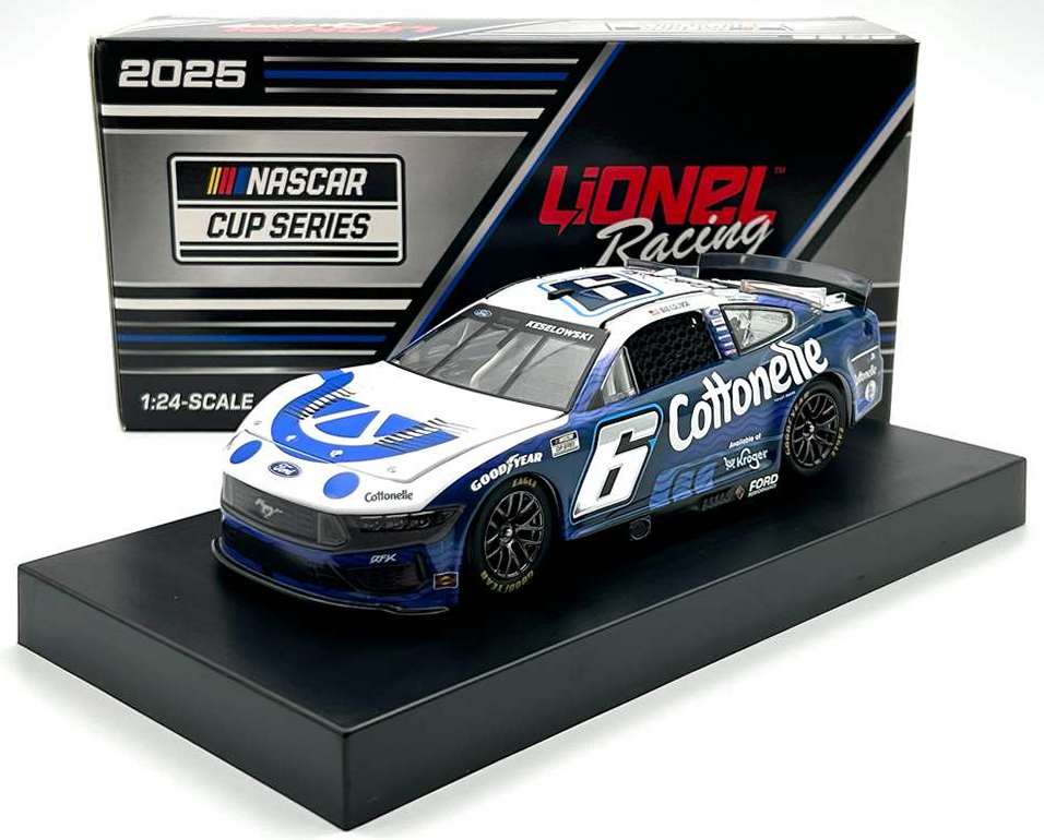 2025 Brad Keselowski #6 Kroger / Cottonelle / Ford Mustang NASCAR 1/24 diecast, by Action Lionel. The RFK Roush Fenway Keselowski Racing #6 Kroger Cottonelle Ford Mustang was raced by Brad Keselowski in the NASCAR Cup, Daytona 500 at Daytona International Speedway on February 16, 2025. This is a foil number car. --