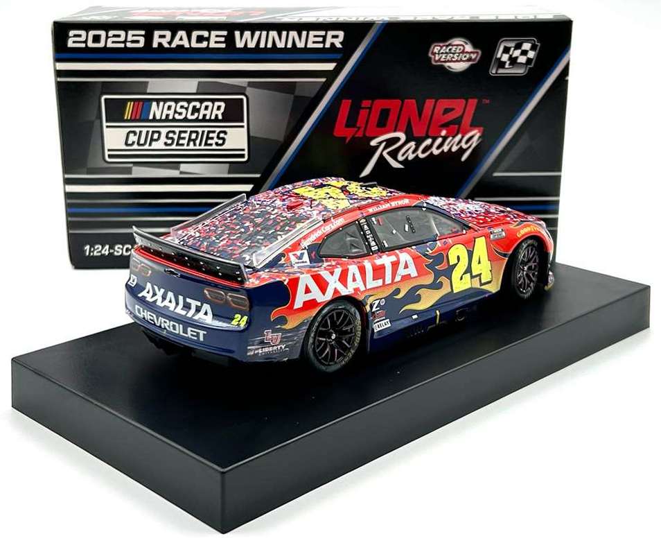 2025 William Byron #24 AXALTA / Daytona 500 Win / Raced Version / Chevrolet Camaro ZL1 NASCAR 1/24 diecast, by Action Lionel. William Byron raced this Hendrick Motorsports #24 AXALTA Chevrolet Camaro ZL1 to victory in the NASCAR Cup, Daytona 500 at Daytona International Speedway on February 16, 2025. This was William Byron's 2nd-straight Daytona 500 win.