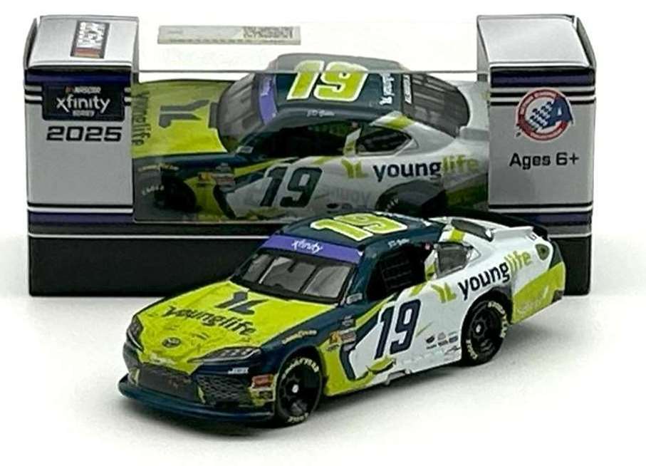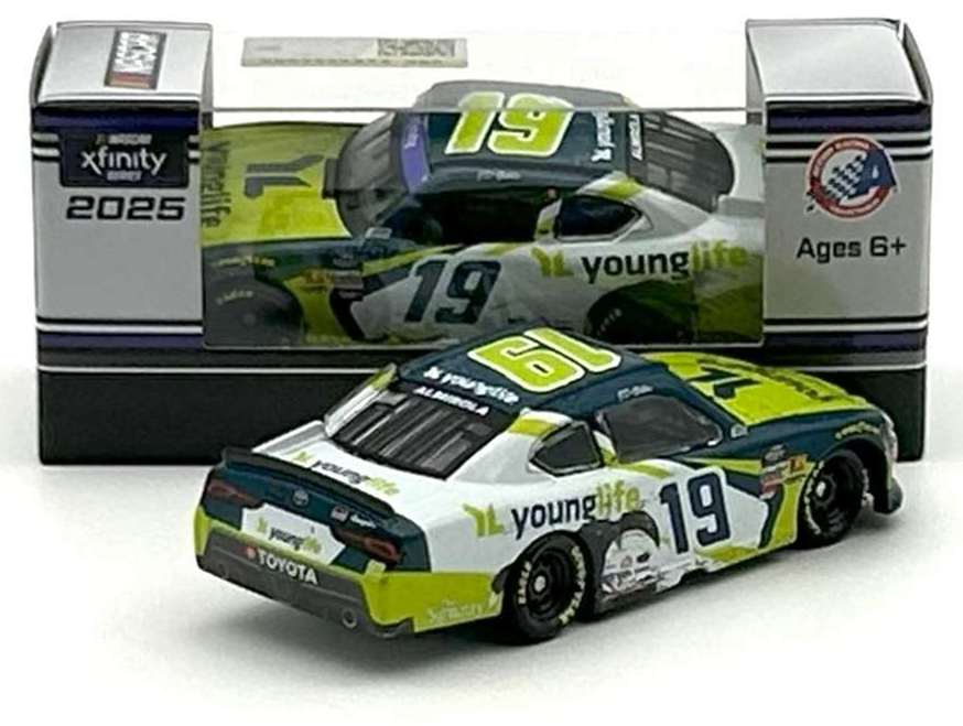 2025 Aric Almirola #19 YoungLife / Phoenix Win / Raced Version / Toyota GR Supra NASCAR 1/64 diecast, by Action Lionel. Aric Almirola raced this Joe Gibbs Racing #19 YoungLife Toyota GR Supra to victory in the NASCAR xfinity Series, GOVX 200 at Phoenix Raceway on March 8, 2025. This was Aric Almirola's 8th career NASCAR xfinity Series win.