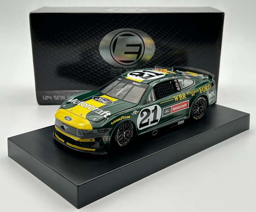2025 Josh Berry #21 Motorcraft / Darlington Throwback / Ford Mustang NASCAR ELITE 1/24 diecast, by Action Lionel. The Wood Brothers Racing #21 Motorcraft Darlington Throwback Ford Mustang was raced by Josh Berry in the NASCAR Cup, Goodyear 400 at Darlington Raceway on April 6, 2025. This throwback replicates Jim Clark's 1965 Indianapolis 500 winning livery, which was pitted by the Wood Brothers. --