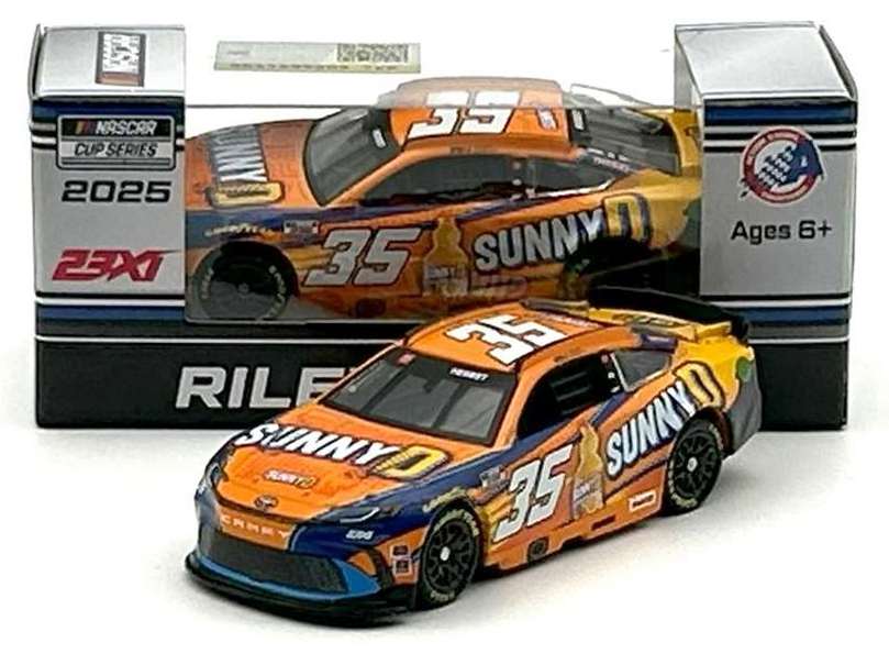 2025 Riley Herbst #35 SunnyD / Toyota Camry XSE NASCAR 1/64 diecast, by Action Lionel. The 23XI Racing #35 SunnyD Toyota Camry XSE will be raced by Riley Herbst in select events during the 2025 NASCAR Cup season.