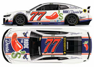 2025 Carson Hocevar #77 Chili's "Ride the 'Dente" / Chevrolet Camaro ZL1 NASCAR 1/64 diecast, by Action Lionel. The Spire Motorsports #77 Chili's "Ride the 'Dente" Chevrolet Camaro ZL1 was raced by Carson Hocevar during the 2025 NASCAR Cup season.