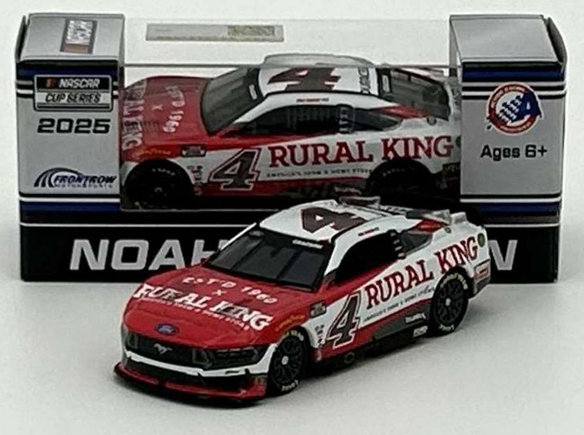 2025 Noah Gragson #4 Rural King / Ford Mustang NASCAR 1/64 diecast, by Action Lionel. The Front Row Motorsports #4 Rural King Ford Mustang was raced by Noah Gragson in select events during the 2025 NASCAR Cup season. Rural King, "America's Farm and Home Store."