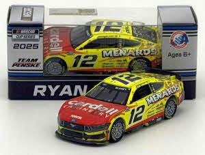 2025 Ryan Blaney #12 Menards / Nashville Win / Raced Version / Ford Mustang NASCAR 1/64 diecast, by Action Lionel. Ryan Blaney raced this Team Penske #12 Menards Cardell Ford Mustang to victory in the NASCAR Cup, Cracker Barrel 400 at Nashville Superspeedway on June 1, 2025.